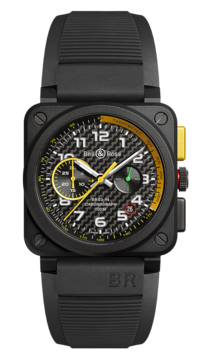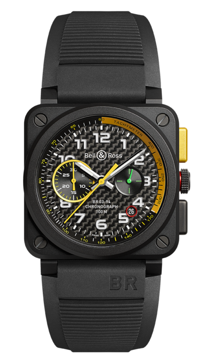 About this WatchThe Bell & Ross BR 03-94 RS17 is a limited edition watch that features a black ceramic case and a carbon fiber dial. The chronograph complication can record short time periods with its central chronograph seconds hand and its thirty-minute timer at 9 o'clock.