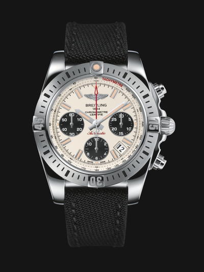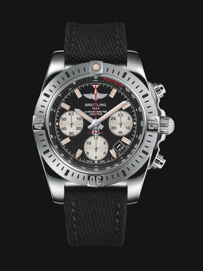 About this WatchBreitling's Chronomat 41 Airborne is the ultimate pilots watch. It features a tachymeter scale, a chronometer-certified selfwinding movement, and an ultra-accurate chronograph. It's available in steel with a sturdy military fabric strap. Buyers can choose between a Sierra Silver or Onyx Black dial.