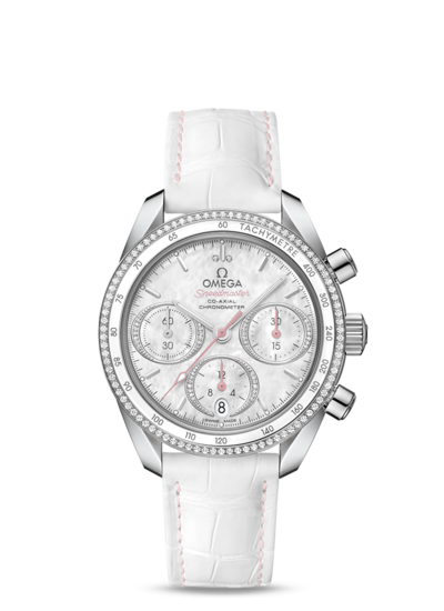 About this WatchIntroduced in 2017 at Baselworld, the Omega Speedmaster 38mm features a chronograph, a date window at 3 o'clock, a tachymeter scale on the bezel, and a chronometer-certified movement. This watch also includes oval sub-dials, and buyers can choose between a wide range of colors.