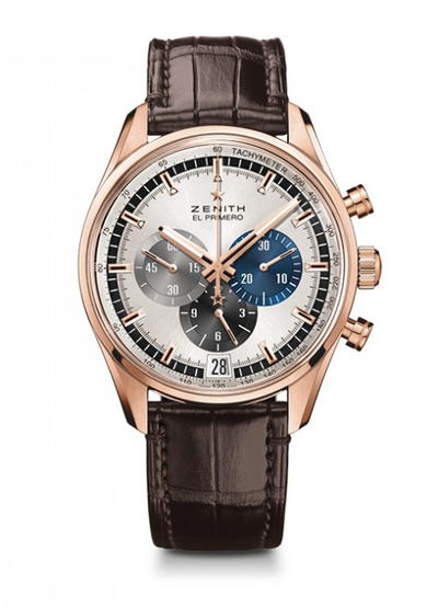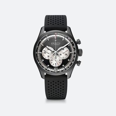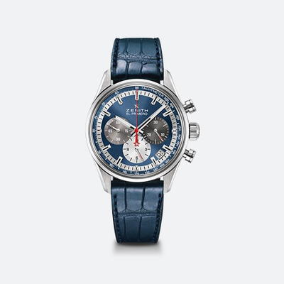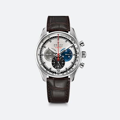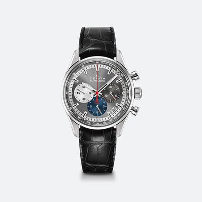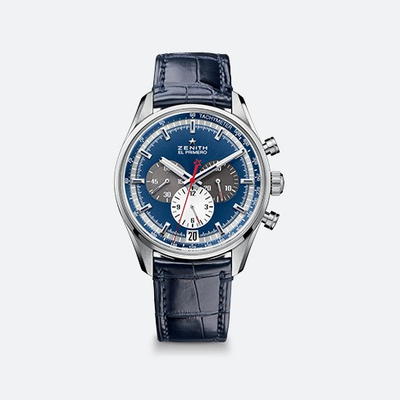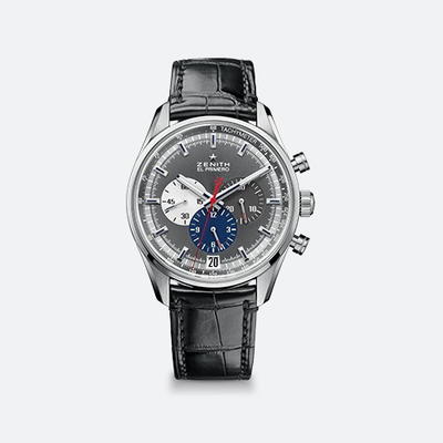 About this WatchThe Zenith El Primero Chronomaster features a chronograph with a central chronograph hand, 12-hour counter at 6 o'clock, and a 30-minute counter at 3 o'clock. The watch also includes a small seconds sub-dial at 9 o'clock, a tachymetric scale, and a date window at 6 o'clock.