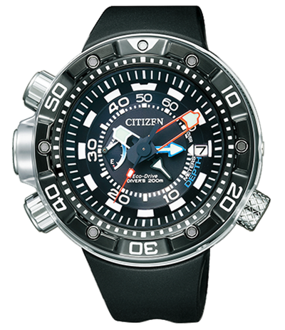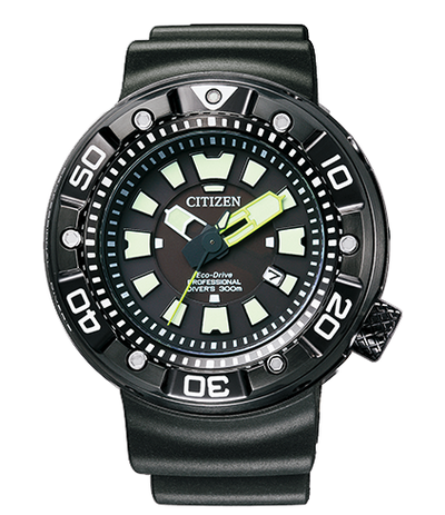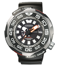 About this WatchThe Citizen Promaster Eco-Drive Professional Diver is ideal for divers because it features extensive water resistance, a unidirectional bezel, anti-shock function, luminescent hands, indices, and 12 o'clock indicator. The watch strap also comes with band extension to fit over your scuba suit.