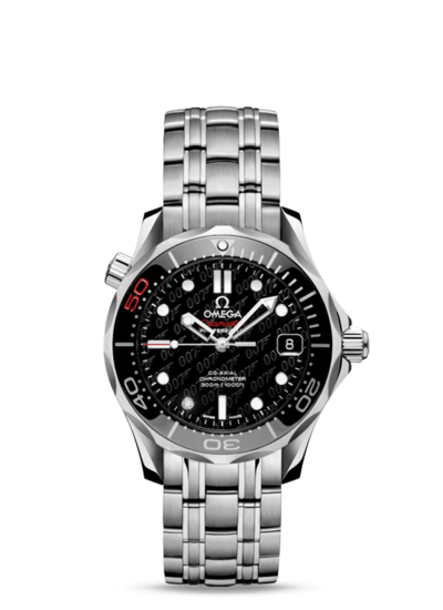 About this WatchThis Omega Seamaster Diver 300m Co-Axial commemorates the 50 years of James Bond. Omega designed and created a limited edition James Bond watch which features a black dial decorated with the James Bond 007 logo.