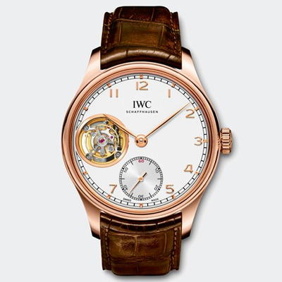 About this WatchAt the heart of the IWC Portugieser Tourbillon Handwound is the IWC-manufactured 98900 calibre manual movement. These watches, available in red gold or white gold, feature a flying minute tourbillon at 9 o’clock.