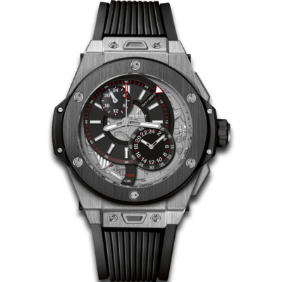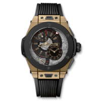 About this WatchThe Hublot Big Bang Alarm Repeater watches feature a black ceramic bezel with either a gold, titanium, or ceramic case. The titanium and king gold watches are a limited edition of 250 while the magic gold and ceramic watches are a limited edition of 100. At the heart of the Big Bang Alarm Repeater is the manual-winding alarm and GMT movement.