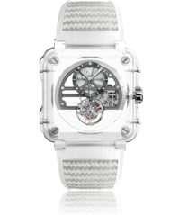 About this WatchReleased in 2017, the Bell & Ross BR-X1 Tourbillon Skeleton Sapphire features an all-sapphire case, skeletonized movement, and flying tourbillon complication. Unlike other skeleton watches, this Bell & Ross watch has an uncluttered dial, making it easy to tell the time.