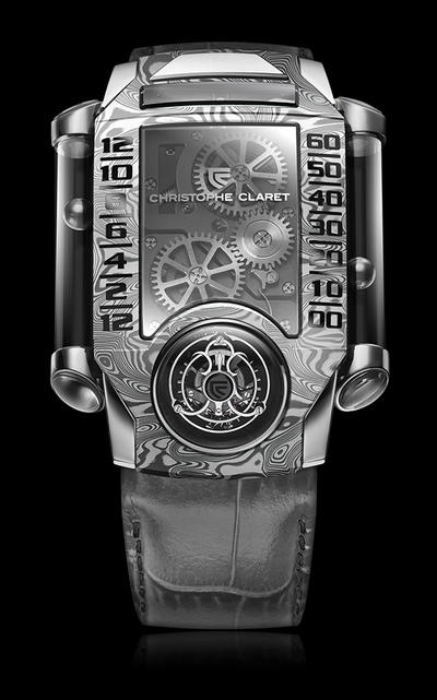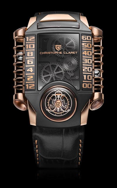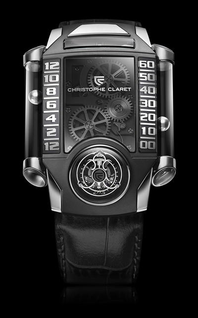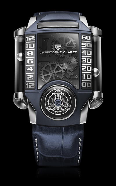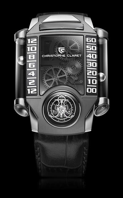 About this WatchChristophe Claret's X-TREM-1 offers something that has never been seen before: a flying tourbillon inclined at a 30 degree angle and mounted on a three-dimensional curvex titanium mainplate. Plus, the retrograde hours and minutes display system is a unique feature that is not found on many watches. The two tiny hollowed steel spheres, seen in the sapphire tubes on the left and right sides of the case, magically move with no mechanical connection thanks to magnetic fields.