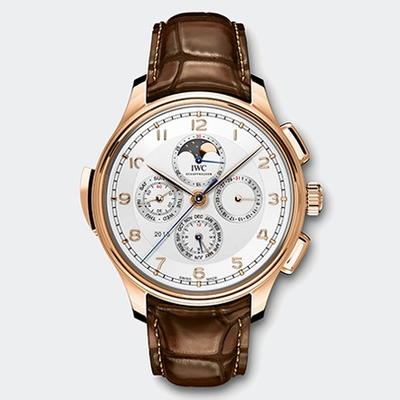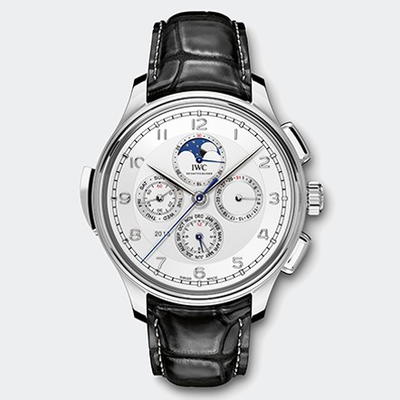 About this WatchThe IWC Portugieser Grande Complication features a chronograph, perpetual calendar, minute repeater, and self-winding mechanical movement. The red gold and platinum versions are limited editions of only 250 watches.