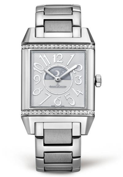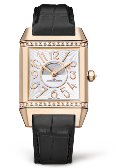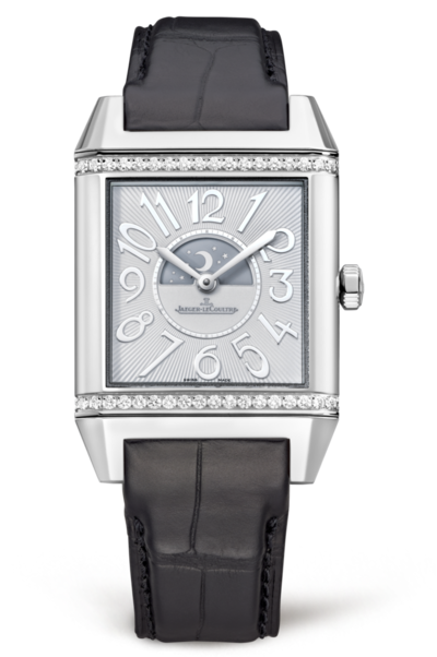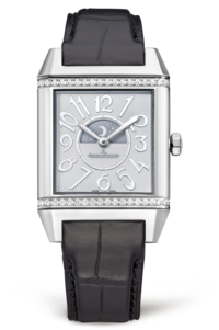 About this WatchThe Jaeger-LeCoultre Reverso Squadra is a ladies watch with a self-winding mechanical movement. Buyers can choose between the silvered, guilloché and sunray-brushed front dial or the black with visible oscillating rotor back dial. Each watch also features a day-night indicator on the front dial.