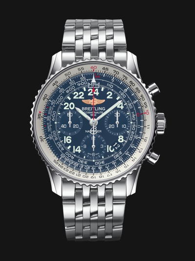 About this WatchIn 1962, Scott Carpenter orbited Earth three times in the Aurora 7 capsule. Driving this expedition, he wore a Breitling Navitimer with 24-hour military time display. This was the first chronograph watch to travel through space. Now, Breitling has created the Navitimer Cosmonaute to celebrate this history. This model features a manual winding movement and 24-hour display, both features found in the 1962 chronograph.