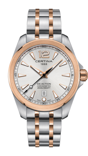 About this WatchThe Certina DS Action is a sporty yet elegant three-hand model. This Certina watch is a chronometer watch, powered by a quartz movement. It is water resistance up to 20 bar.
