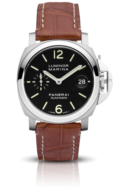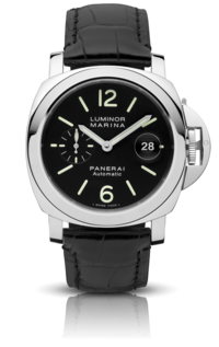 About this WatchThe Panerai Luminor Marina Automatic offers a stainless steel case and a leather strap. As for the movement, this Panerai watch features the exclusive Panerai OP III calibre, an automatic movement with 21 jewels, an anti-shock device, a 42-hour power reserve, and Côtes de Genève decoration on the bridges. This movement has been tested and certified by C.O.S.C.