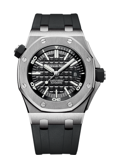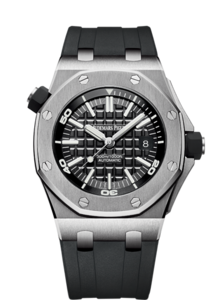 About this WatchAudemars Piguet has created the ultimate diver's watch because this watch includes a rotating inner bezel with diving scale, black rubber strap, sturdy stainless steel case, and 30 bar water resistance. The Royal Oak Offshore Diver is a selfwinding watch with a 60 hour power reserve.