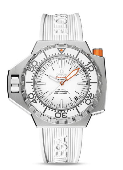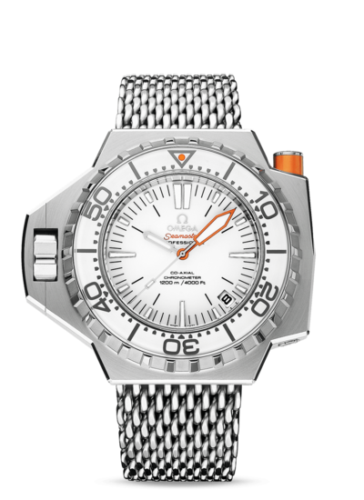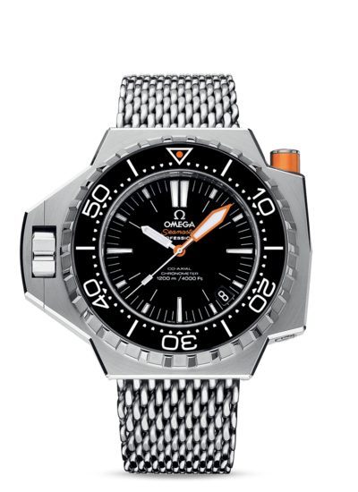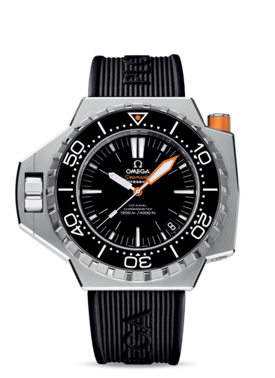 About this WatchThe Omega Seamaster PloProf 1200m Co-Axial is designed to withstand the instense pressure found in the ocean's depths. The Omega PloProf boasts a screw-in crown, 120 bar water resistance, automatic helium escape valve, and bezel security pusher.