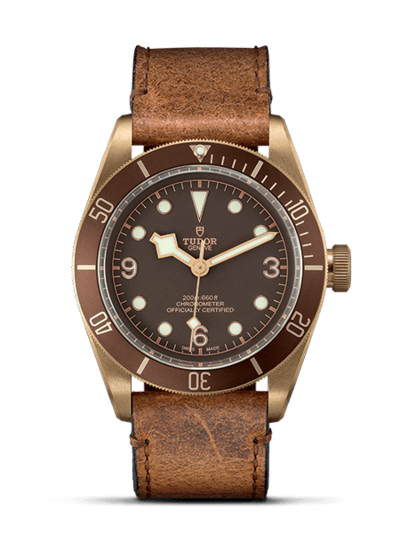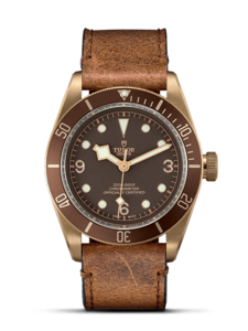 About this WatchThe Tudor Heritage Black Bay Bronze features a vintage-inspired bronze case and an aged leather strap. This Tudor dive watch also comes with two additional fabric straps.