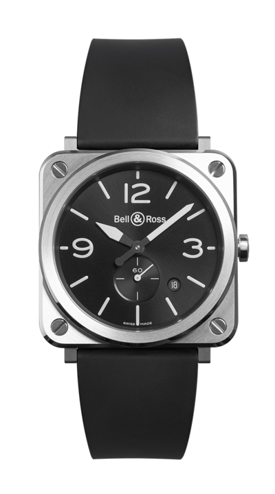 About this WatchThe Bell & Ross BR S Quartz is a square 39 mm watch. Most variations of this Bell and Ross model include a small seconds sub-dial at 6 o'clock. Buyers can choose between a rubber strap, a leather strap, a ceramic bracelet, or a satin strap.