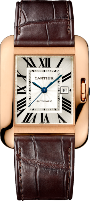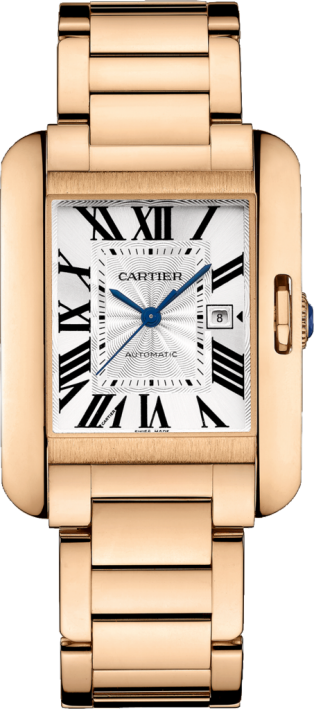 About this WatchThe Cartier Tank Anglaise now has a streamlined form with the winding mechanism incorporated into the case. This allows Cartier to revert back to their original Tank design.
