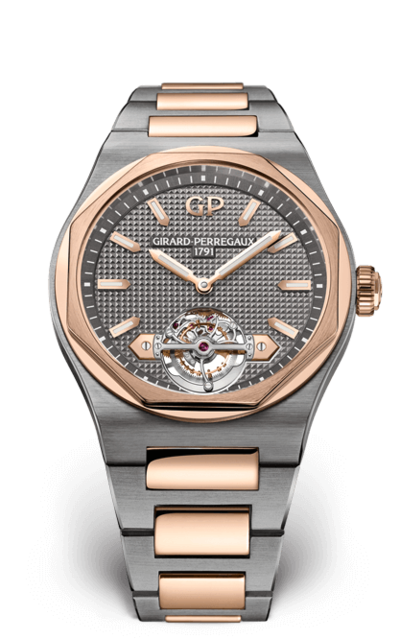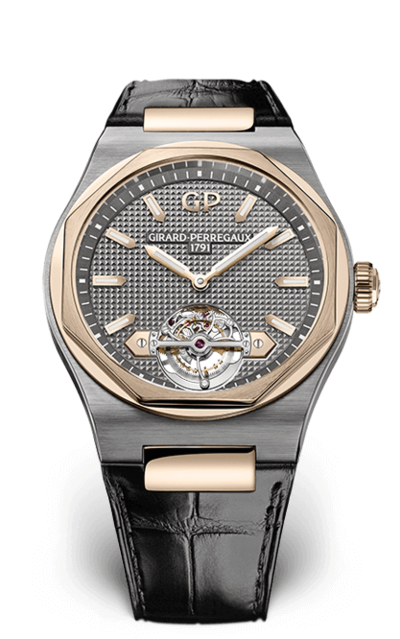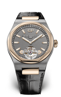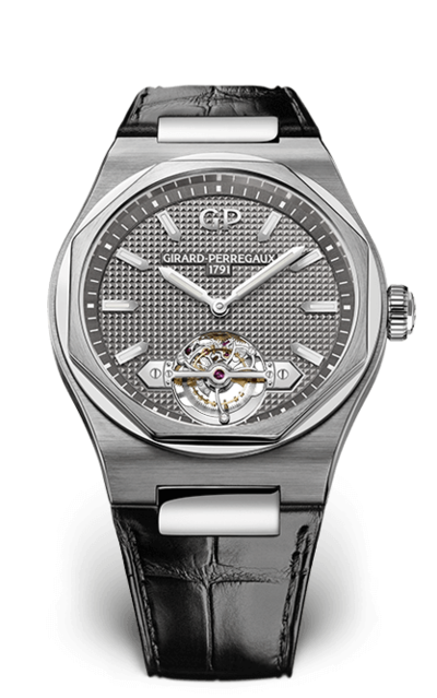 About this WatchThe Girard-Perregaux Laureato Tourbillon feature the brand's signature octogonal bezel and Clou de Paris dial. The tourbillon and bridge can be seen at 6 o'clock. This model was released at SIHH 2017.