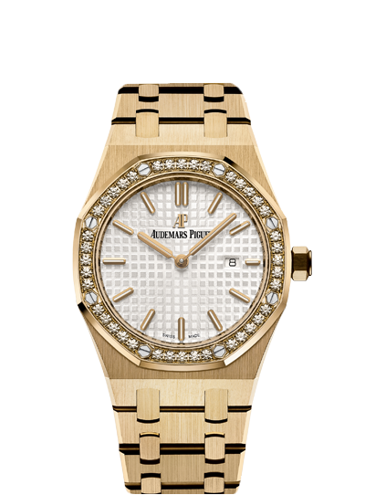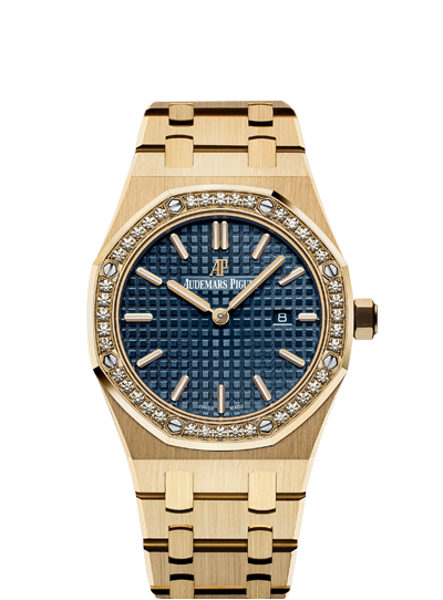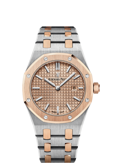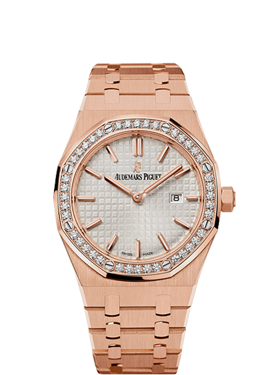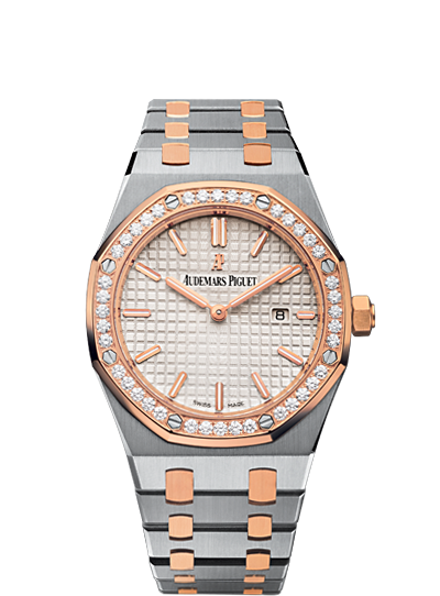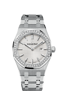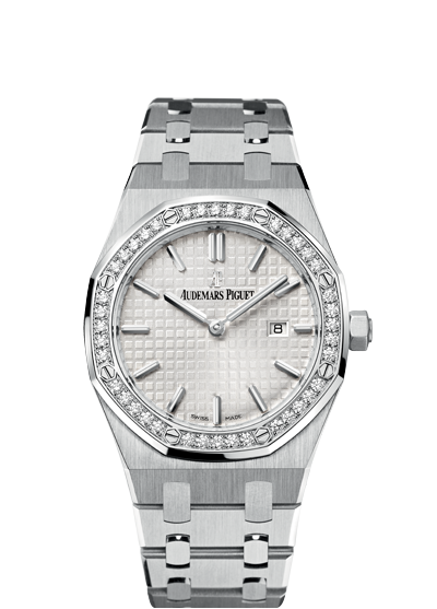 About this WatchThese ladies Royal Oak Quartz watches comes with Audemars Piguet's signature “Grande Tapisserie” pattern. Additionally, the hour markers and Royal Oak hands have an applied luminescent coating which will help buyers tell the time in dim or dark lighting.