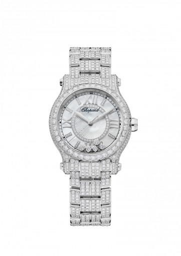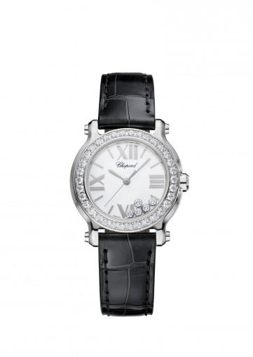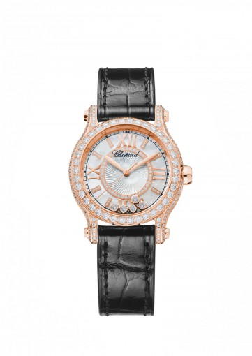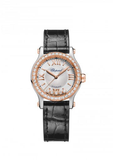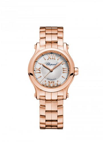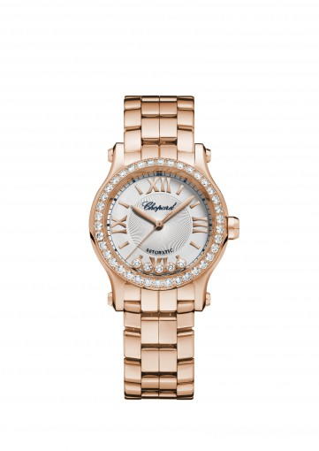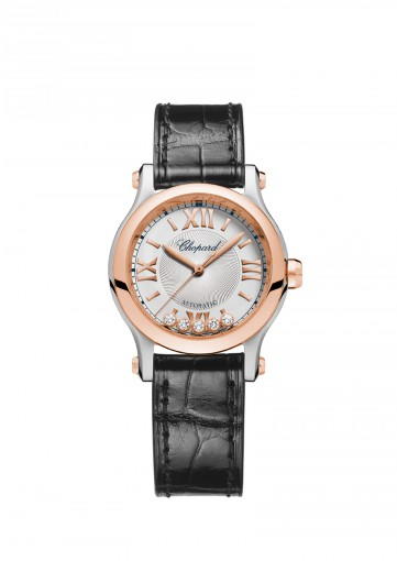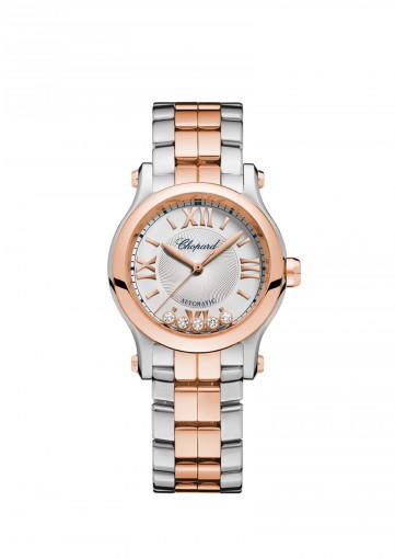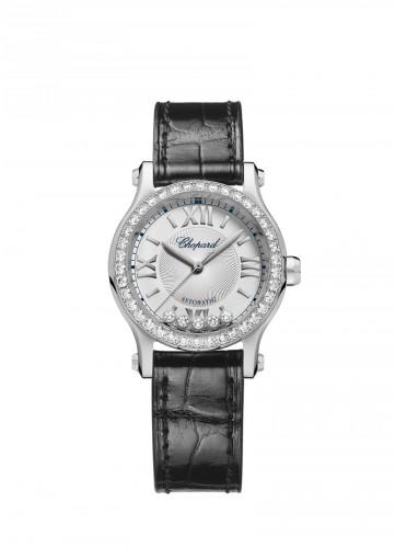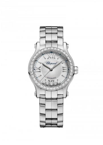 About this WatchThe Chopard Happy Sport 30 mm Automatic features five dancing diamonds that move as you move your arm. This ladies watch is powered by a highly accurate automatic movement.