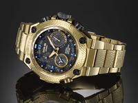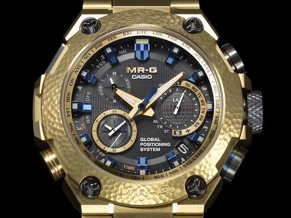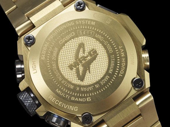 Celebrating 20 years of MR-G, Casio has announced a brand new luxury model. This model, the Casio G-Shock ‘Hammer Tone’ MRG-G10000HG9A, is gold with a tsuiki hammer-pattern decoration around the bezel and bracelet. This pattern is carefully hammered into each watch by the tsuiki master, Mr. Bihou Asano. This is only the second Casio watch with this intricate decoration; the first was a limited edition Casio G-Shock ‘Hammer Tone’ MR-G that came out in July of 2016.